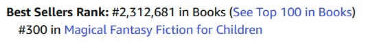 While the book is ranked 2,312,681 in best sellers, the total number of books for sale through Amazon is tens of millions; some sources have it at 40 million as of September 2025. But notice the category statistic is a rank of #300.